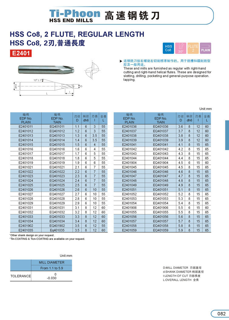 2. 2刃小數點銑刀082