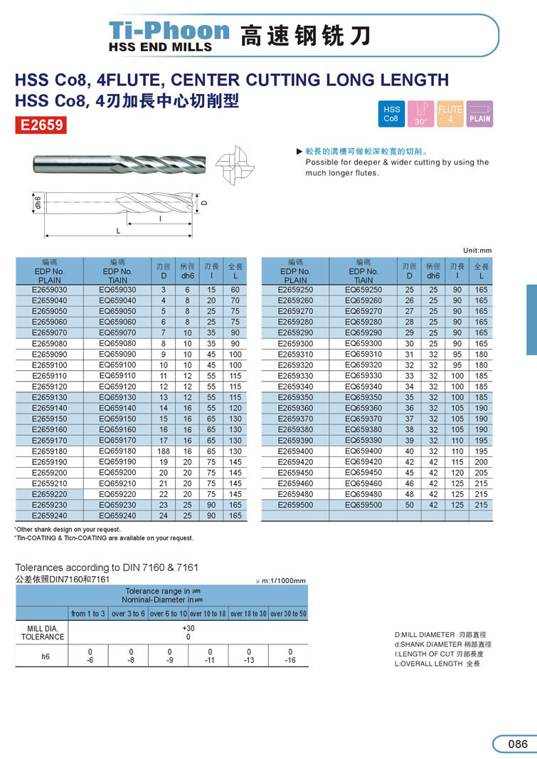 5. 4刃加長白鋼銑刀086