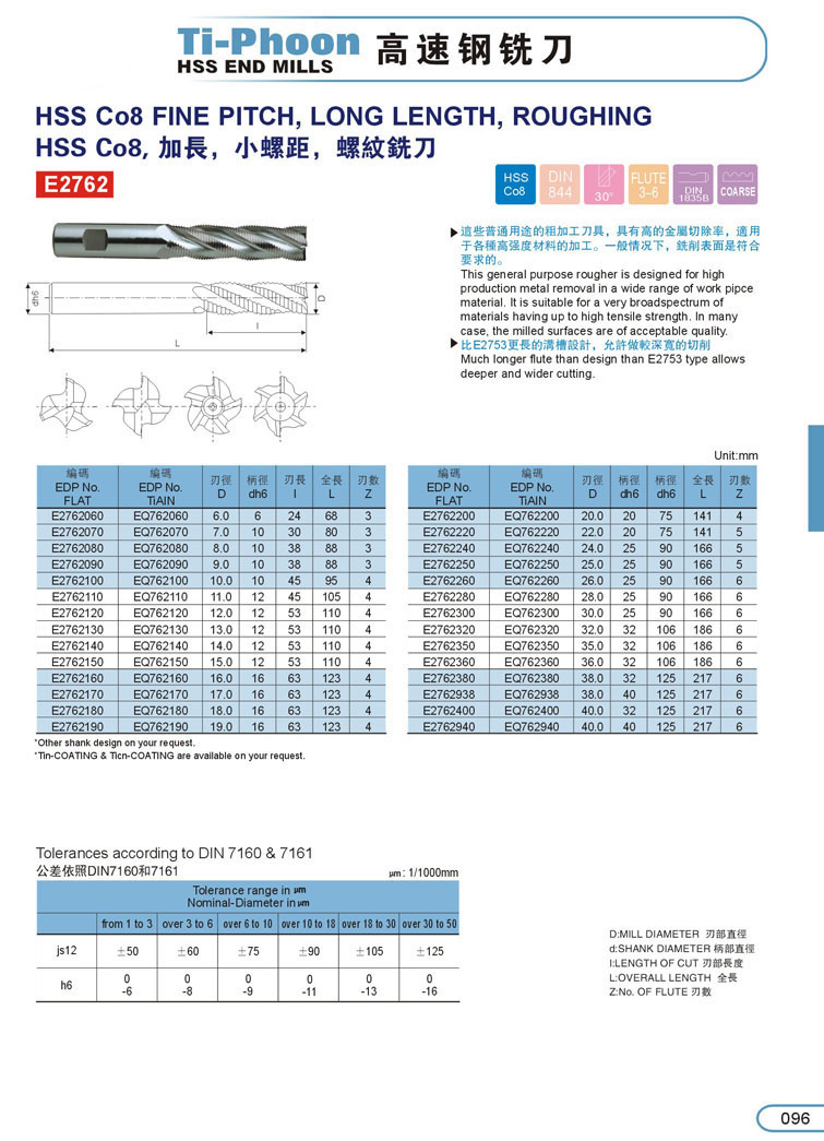 16. 加長細齒型粗銑刀096