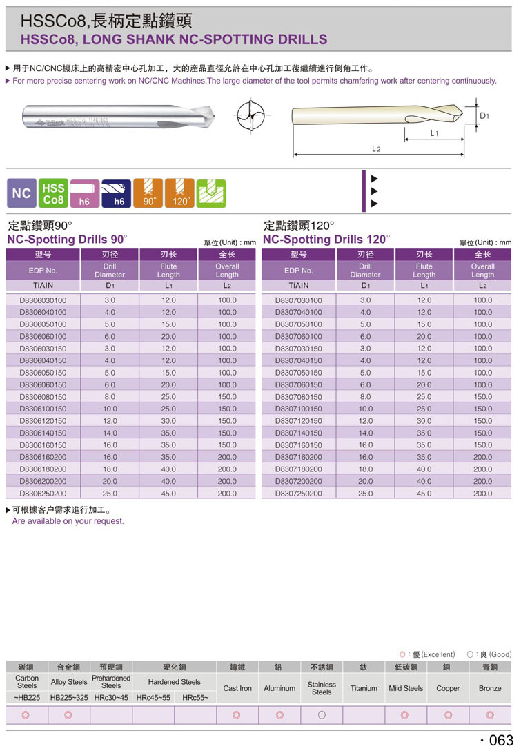 NC120度加長柄定點鑽HSS CO定點鑽(062-2)