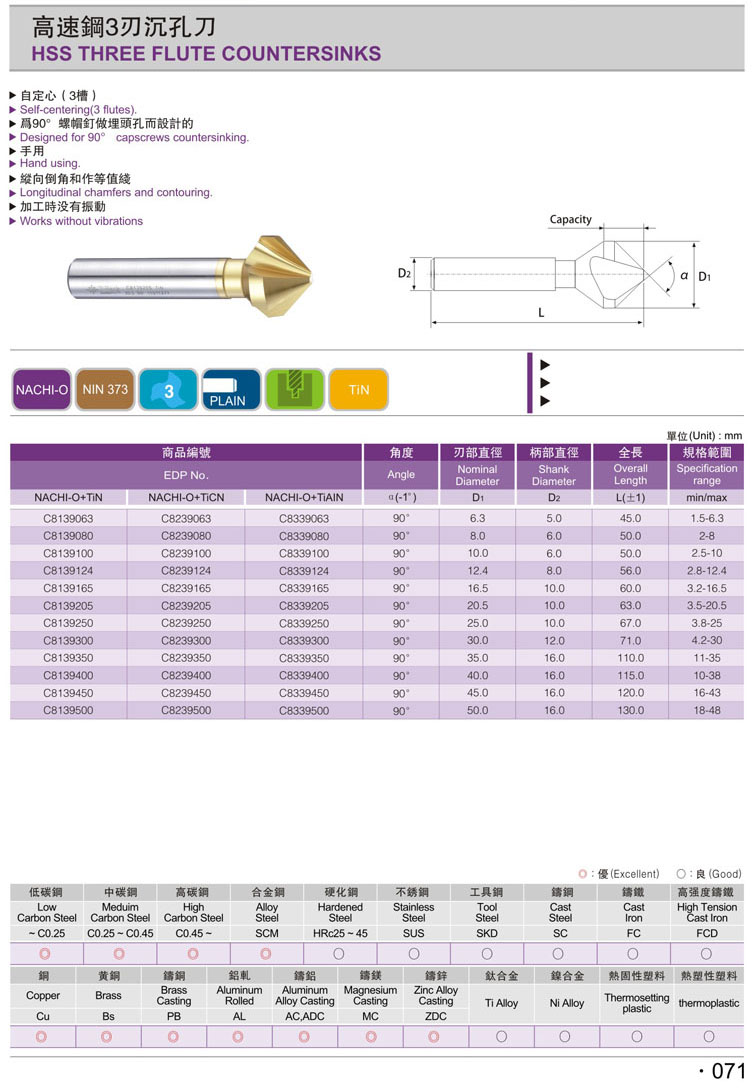 1. 3刃90度鍍鈦倒角刀071
