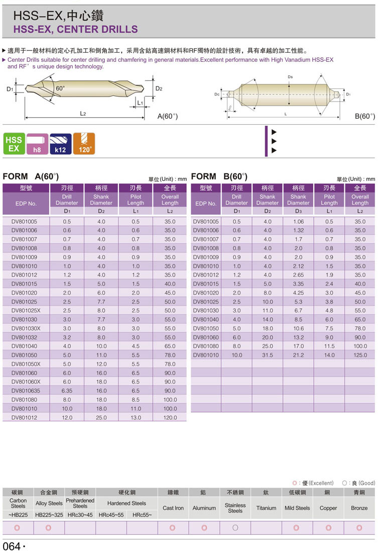 1. 高速鋼中心鑽064
