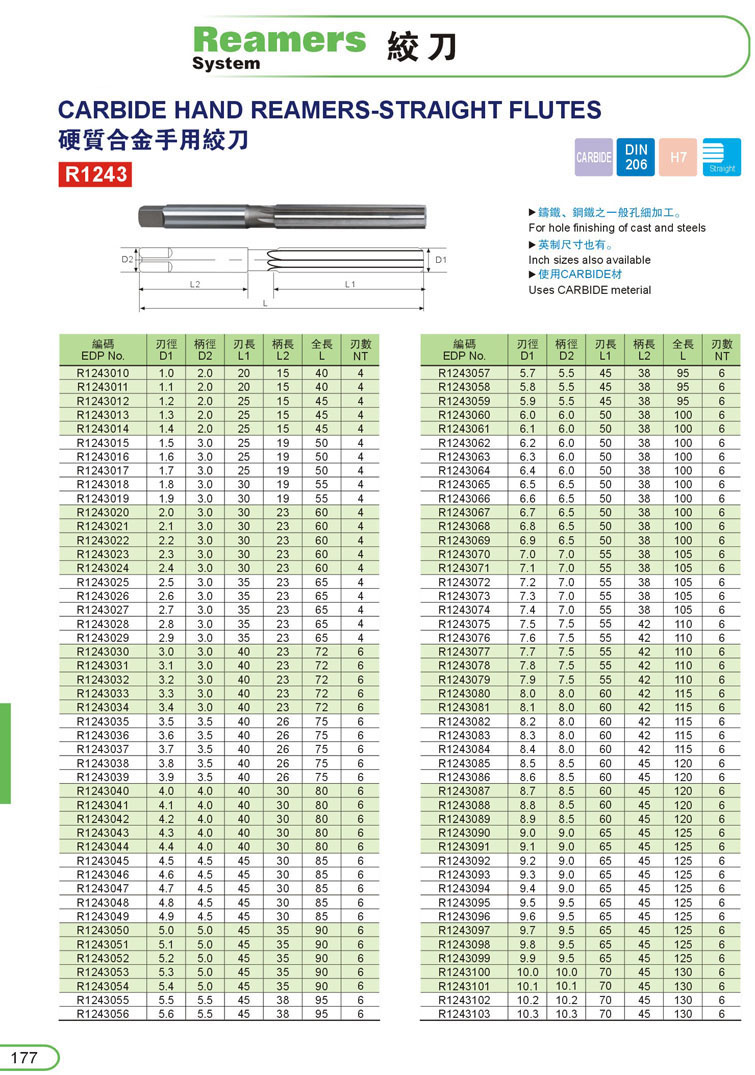4. CARBIDE鎢鋼手用鉸刀177