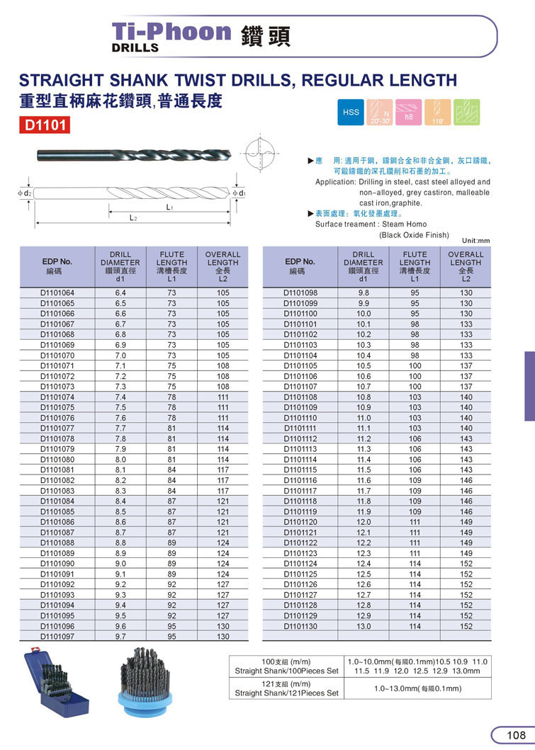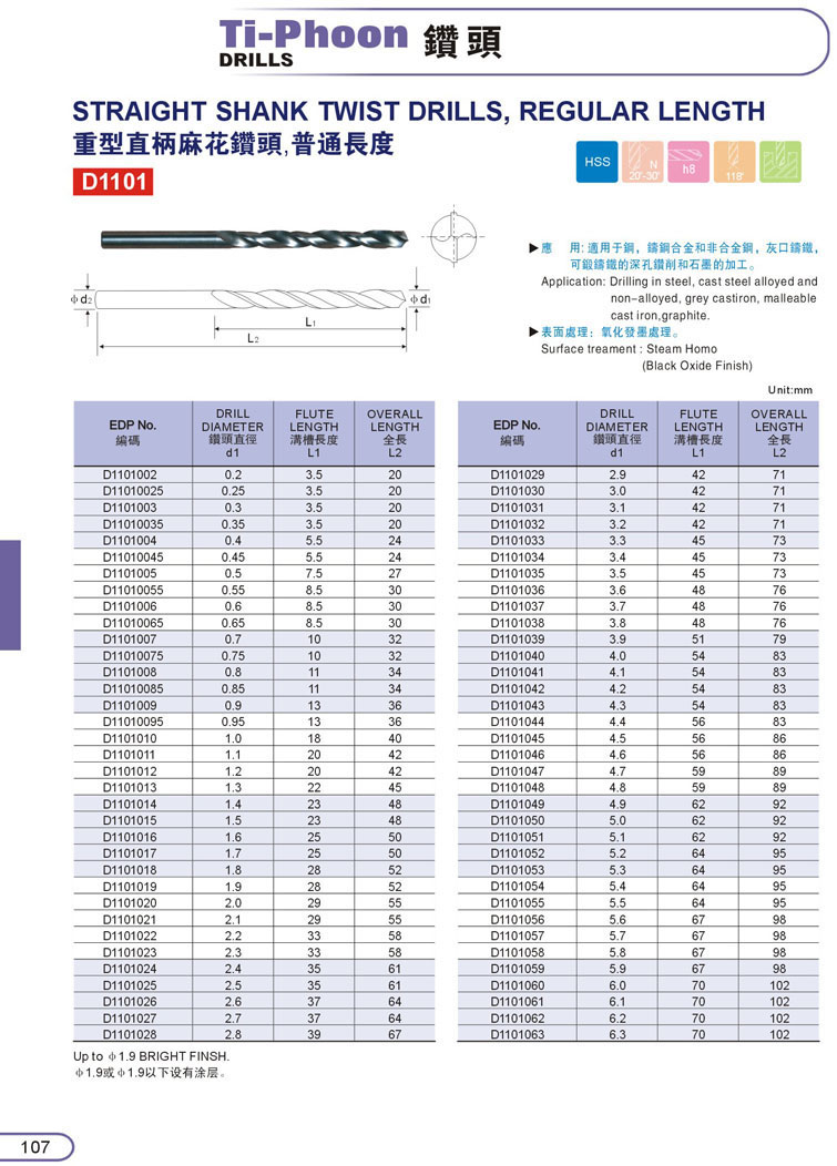 1. HSS直柄鑽頭107