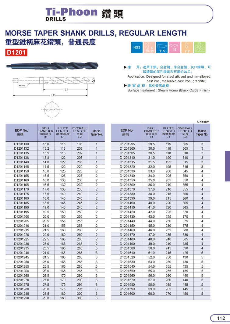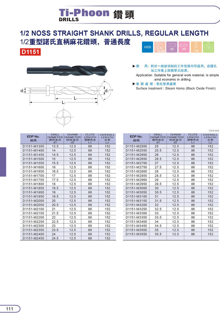 1. HSS直柄鑽頭107