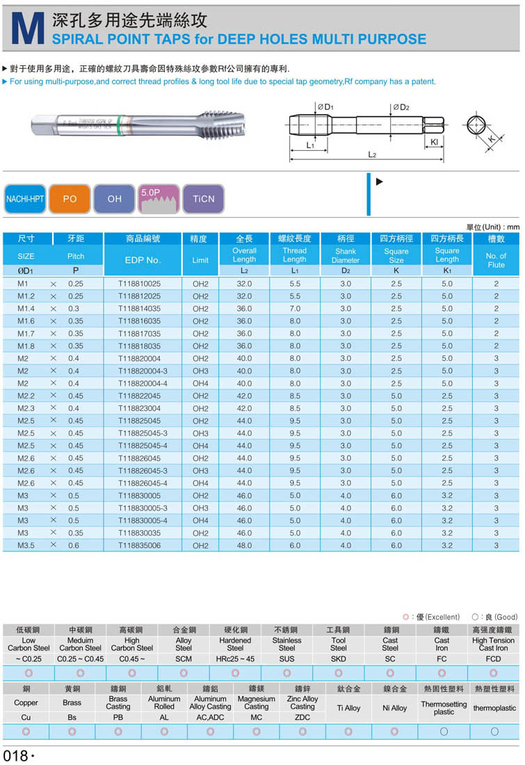 公制先端鋼件絲攻018