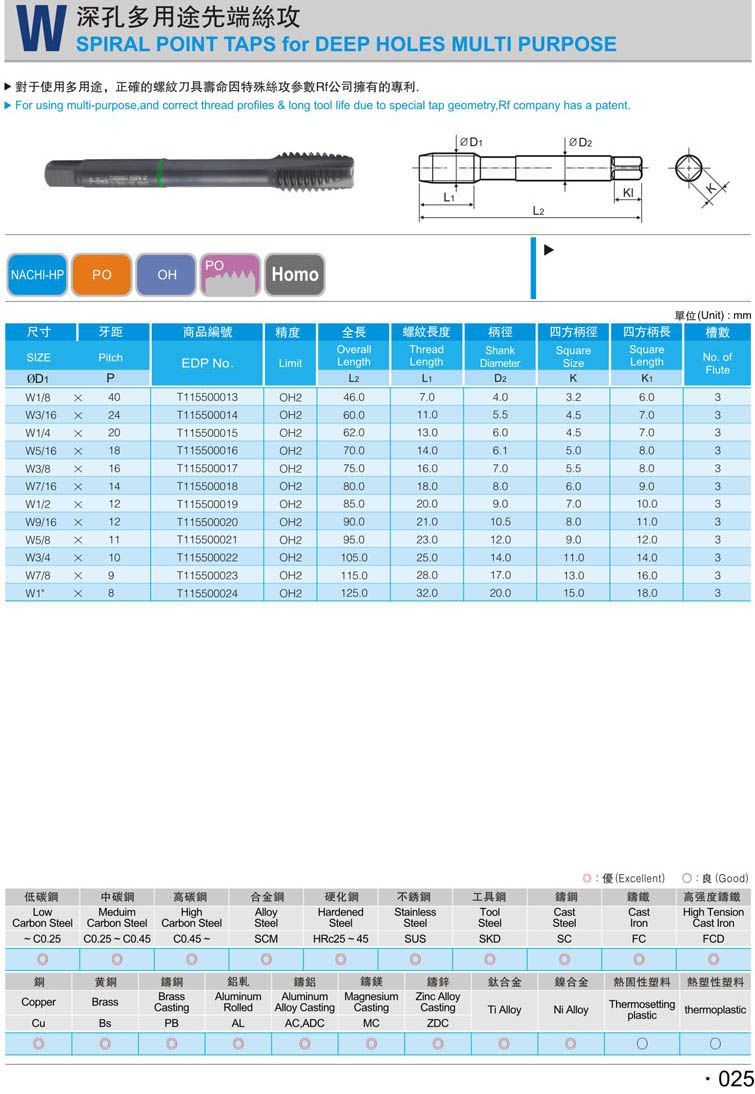 英制先端鋼件絲攻025