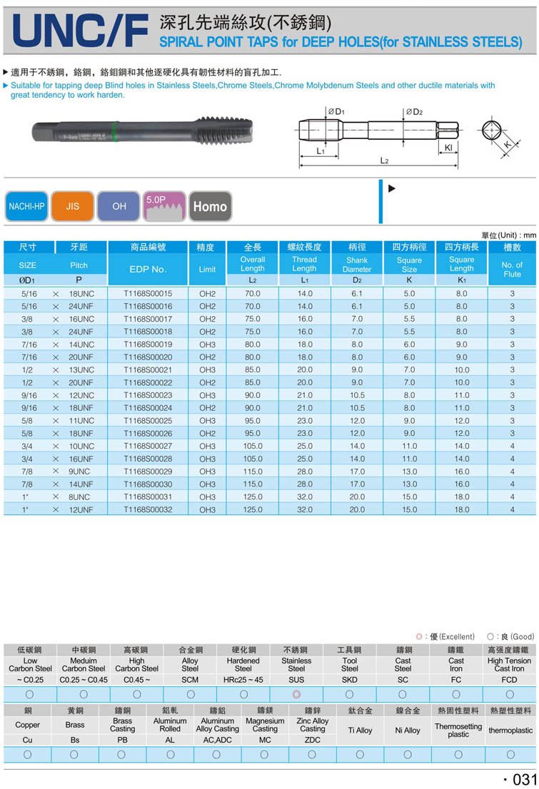25. 美制螺紋護套絲攻(螺旋型) 042