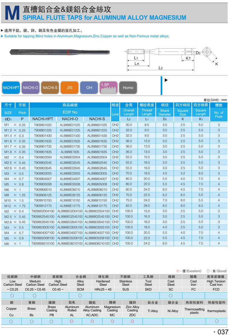 25. 美制螺紋護套絲攻(螺旋型) 042