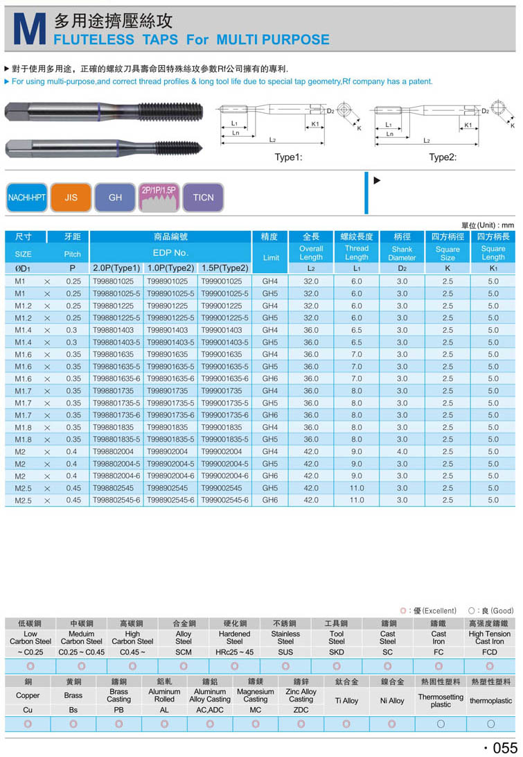 25. 美制螺紋護套絲攻(螺旋型) 042
