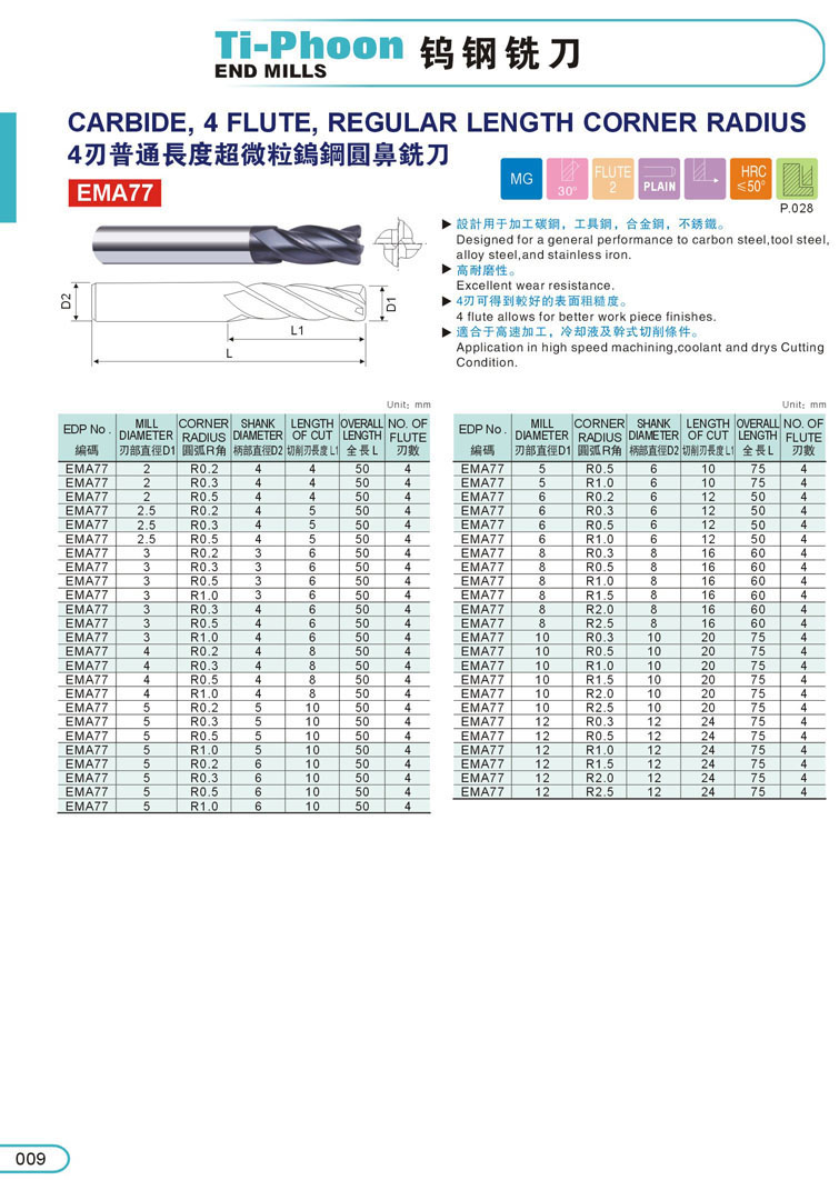 10. 4刃加長超微粒圓鼻鎢鋼立銑刀010