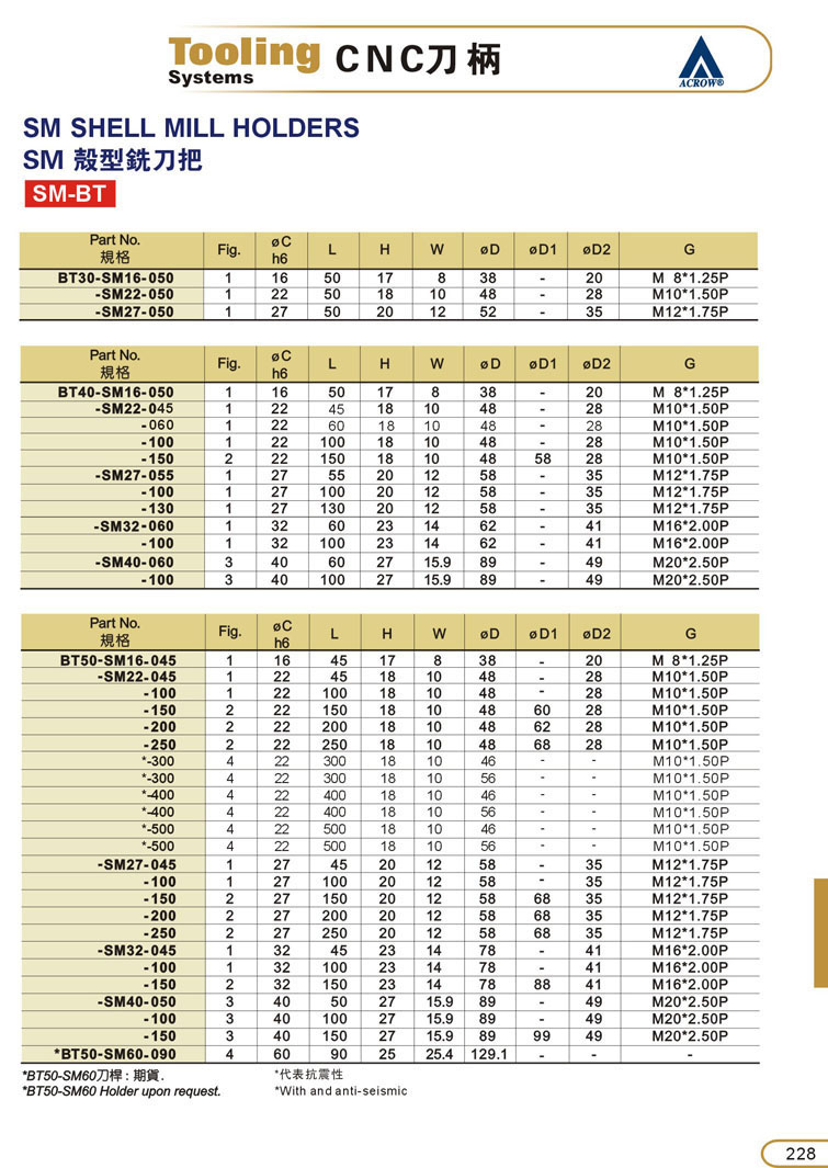一:ACROW加工中心刀柄
