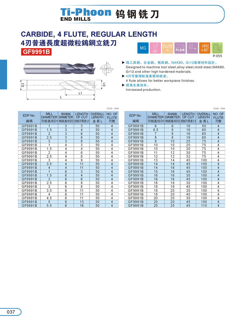 4. 4刃加長超微粒鎢鋼立銑刀038